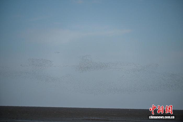 4月6日,辽宁丹东鸭绿江心留鸟休憩天留鸟翔散,产生“鸟浪”景不雅,吸收乘客前去鉴赏。图为辽宁丹东鸭绿江心留鸟歇息天的“鸟浪”。中新社记者 于陆地 摄