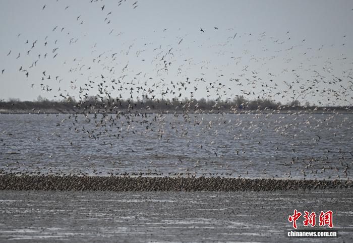 4月6日,辽宁丹东鸭绿江心留鸟休憩天留鸟翔散,产生“鸟浪”景不雅,吸收乘客前去鉴赏。图为辽宁丹东鸭绿江心留鸟歇息天的“鸟浪”。中新社记者 于陆地 摄